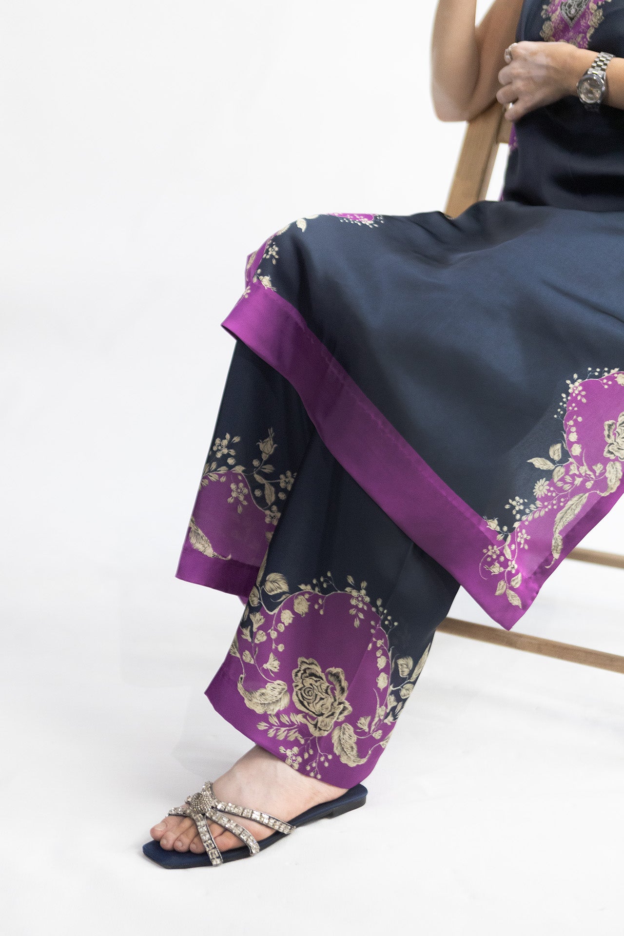 - Wide legged Trouser : Premium Printed Charmeuse Silk